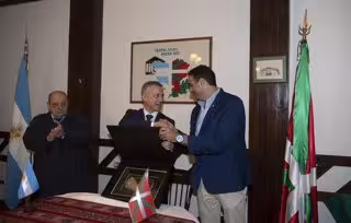 Posteriormente, Urkullu ha firmado en el Libro de Honor de la Euskal Etxea y ha recibido la distinción de "visitante notable" por parte del Consejo de Deliberantes (Ayuntamiento). Una distinción que, según el lehendakari, supone un reconocimiento más a todo lo que la diáspora ha hecho por la ciudad".