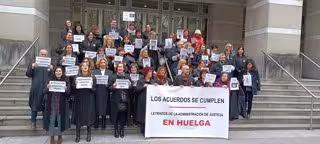 Los Letrados de la Administración de Justicia en Euskadi, en huelga indefinida, se han concentrado este martes ante la sede del TSJPV, en Bilbao, para asegurar que están dispuestos a continuar con el paro hasta que el Ministerio de Justicia "se siente a hablar" y se comprometa a "cumplir los acuerdos" en materia salarial y de condiciones laborales. "Pedimos algo tan sencillo como que, si te aumentan el trabajo, te suban el sueldo", han afirmado.