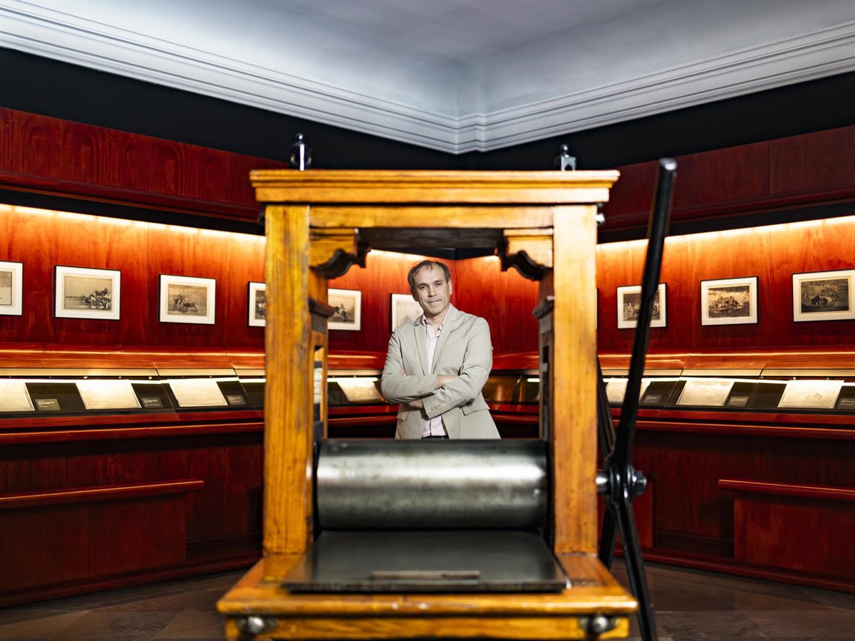 Archivo - Luis Zueco con la serie 'Los Caprichos' de Goya, protagonistas de su última novela - JEOSM - Archivo