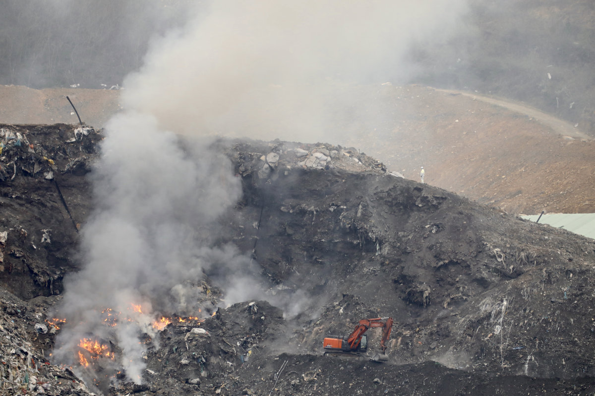 La maquinaria pesada ha empezado a trabajar, a las 8.00 horas para extinguir el fuego que se reavivó este jueves por la noche en la parte alta del vertedero de la localidad vizcaína de Zaldibar, que se derrumbó el pasado 6 de febrero, segun ha informado el Gobierno Vasco.
