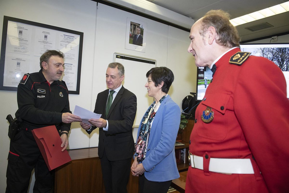 También se ha homenajeado a los siete ertzainas que han prestado servicio en esta sede policial desde su apertura el 24 de enero de 1994. Beltrán de Heredia ha mostrado su "agradecimiento, admiración y respeto" hacia la labor llevada a cabo por los homenajeados.