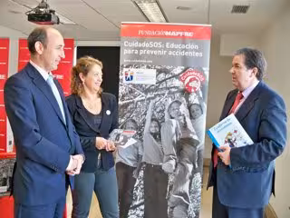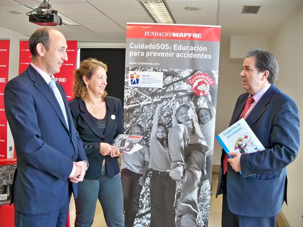 El director del Instituto de Prevención, Salud y Medio Ambiente de la Fundación Mapfre, Antonio Guzmán, la directora de General de Osalan, Pilar Collantes y el director General Territorial de Mapfre en el País Vasco, Enrique Cid, han comparecido en una rueda de prensa para dar a conocer los resultados de este programa educativo que lleva por título 'Cuidadosos', que forma parte de un proyecto mayor que denominado 'Con mayor cuidado' que se presentó hace dos años, y en el han participado cerca de 6.000 niños de 30 colegios de Euskadi.