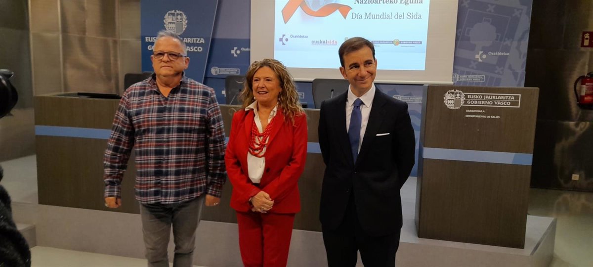 Sagardui, acompañada del presidente de Euskalsida, Marco Imbert, y del presidente del Consejo de Farmacéuticos del País Vasco, Juan Uriarte, ha comparecido este lunes en rueda de prensa en Bilbao para informar sobre la situación del VIH en Euskadi y las acciones que se están desarrollando en el marco del Plan Estratégico de Prevención y control de la infección por el VIH y otras infecciones de transmisión sexual 2022-2030.