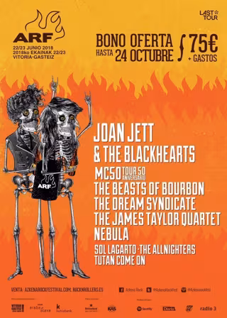 Azkena Rock Festival ha sumado dos nuevas confirmaciones a su edición de 2018, que se celebrará en Vitoria los días 22 y 23 de junio, y a artistas ya anunciados como Joan Jett and The Blackhearts y Nebula, se han incorporado la gira de 50 aniversario de los norteamericanos MC5, que en esta ocasión se denominarán MC50 y actuarán en Mendizabala en fecha única en el Estado, y The James Taylor Quartet, según ha informado Last Tour.