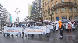 Médicos vascos se han manifestado este lunes en San Sebastián para reclamar al Ministerio de Sanidad un Estatuto Marco en el que puedan negociar sus condiciones laborales y han denunciado que no han tenido "ni voz ni voto" en la elaboración del nuevo borrador, situación que han calificado de "injusta".