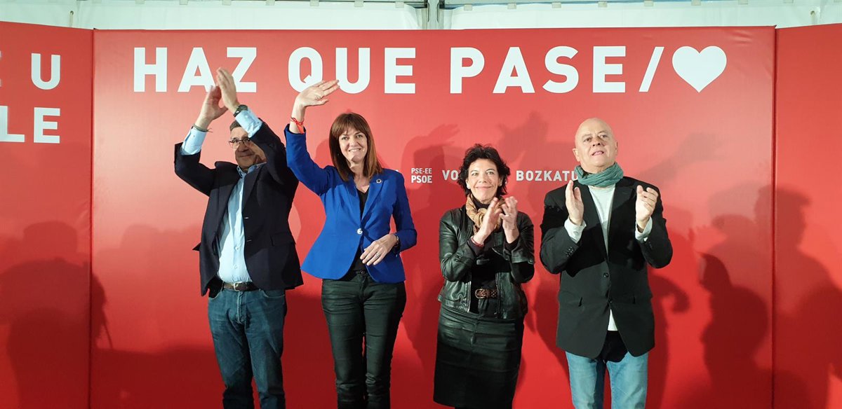 La líder de los socialistas vascos ha recordado a los ciudadanos que el domingo está en juego optar por "la crispación, la intolerancia y el retroceso de libertades" que representan las derechas, o la apuesta por un Gobierno socialista que defienda "el diálogo, la convivencia y la igualdad de derechos" entre mujeres y hombres.