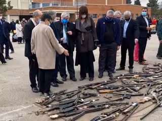 En él se ha procedido a la destrucción con una apisonadora de 1.400 armas en poder de la Audiencia Nacional e incautadas desde 1976. Se trata de armamento que ya ha agotado su recorrido judicial y no sirve como prueba, y que se han trasladado posteriormente a una fundición.