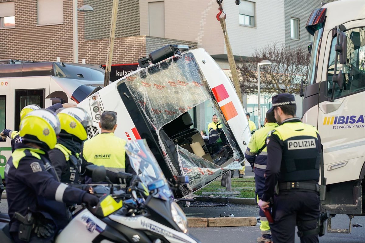 Al lugar se han desplazado ambulancias y, según han confirmado fuentes municipales, al menos cuatro personas han resultado heridas y han sido trasladadas al hospital de Txagorritxu (tres del microbus y otra persona que iba en el Tranvía). Hasta el punto del accidente se han traslado Bomberos, que han rescatado a las personas heridas en el autobús.