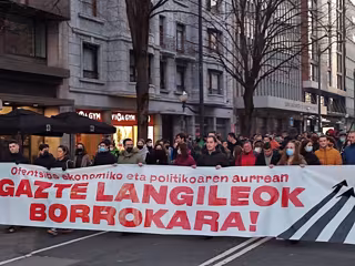 La marcha ha arrancado pasadas las 18.00 horas desde la Plaza del Sagrado Corazón, tras una pancarta en la que se podía leer 'Ofentsiba ekonomiko eta politikoaren aurrean, gazte langileok borrokara' (Contra la ofensiva económica y política, jóvenes trabajadores a la lucha), y en la misma se han proferido gritos en favor de la lucha obrera, así como de la "revolución socialista", entre otros.