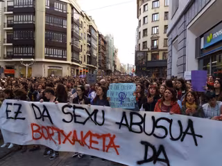 Posteriormente, y situados tras una pancarta en la que podía leerse "Esta sentencia es violencia", se han dirigido en manifestación espontánea hasta el Palacio de Justicia de la capital alavesa.