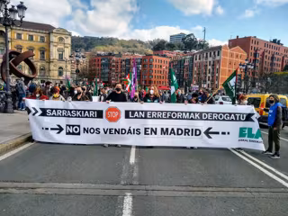 Las marchas han sido convocadas en Euskadi por ELA y por los sindicatos CIG, de Galicia, e Intersindical Cataluya, donde también se han llevado a cabo movilizaciones, y bajo el lema "Sarraskiari STOP; lan erreformak derogatu. No nos vendáis en Madrid".