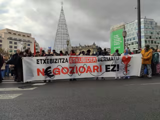 Miles de personas, la mayoría jóvenes, han secundado este sábado la manifestación convocada por la Red de Sindicatos de Vivienda de Euskal Herria para reivindicar "el derecho universal a la vivienda" y denunciar que las medidas impulsadas por el Gobierno Vasco y el ejecutivo de Pedro Sánchez para facilitar el acceso al alquiler "no van a solucionar el problema", ya que éstas solo "aumentan el negocio de la vivienda".