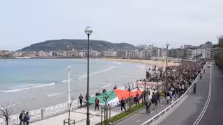 Miles de personas se secundado este domingo, desde el Alderdi Eder hasta el Peine del Viento en San Sebastián, la manifestación convocada por agentes de la cultura vasca en apoyo al pueblo palestino bajo el lema 'Genocidio Stop'. Durante la movilización ha habido una decena de actuaciones artísticas, desde bertsos, hasta música o creación de una ilustración.