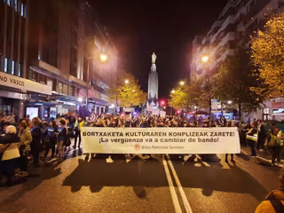 La marcha ha partido pasadas las siete de la tarde de la plaza del Sagrado Corazón tras una pancarta con el texto 'Bortxaketa kulturaren konplizeak zarete (Sois cómplices de la cultura de la violación). !La vergüenza va a cambiar de bando!', firmada por la red feminista de Bilbao.