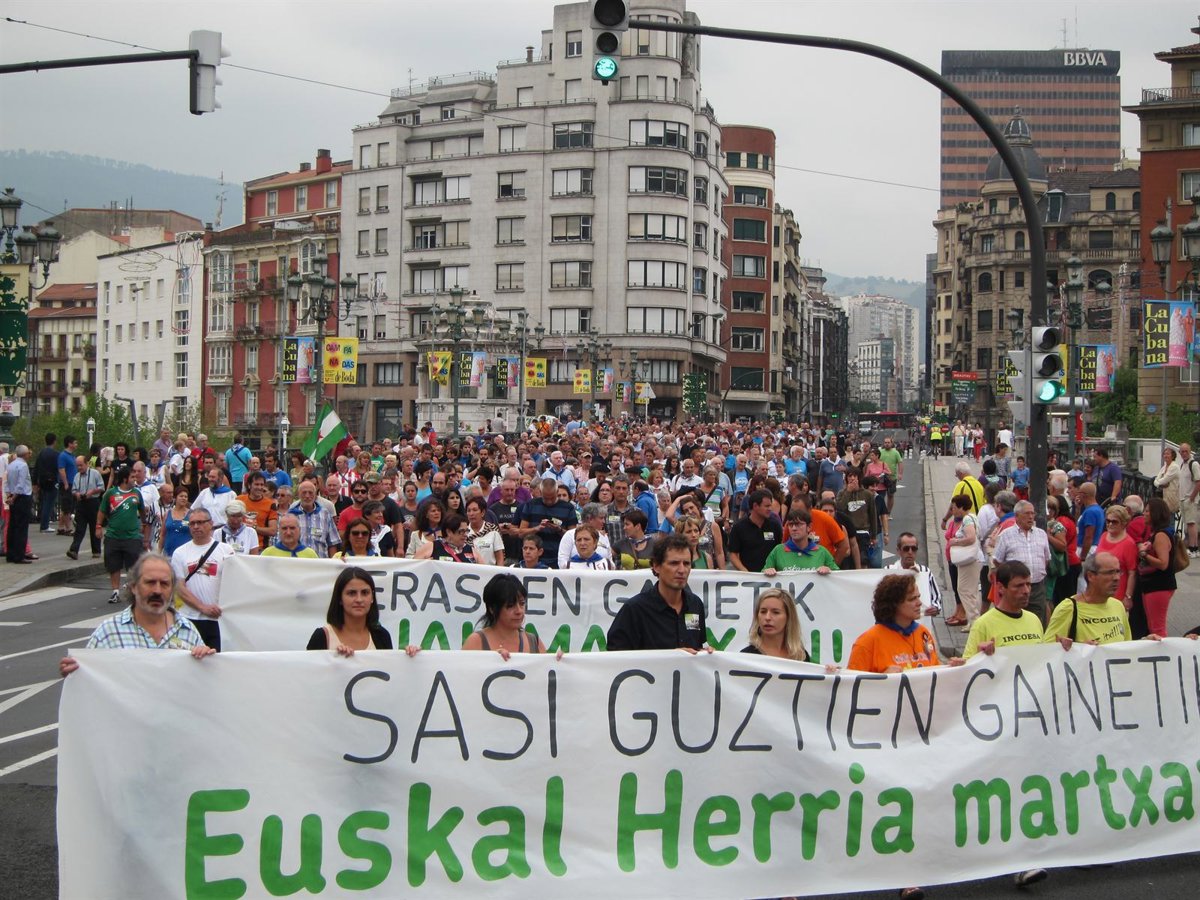 La marcha, tradicionalmente convocada cada año por la izquierda abertzale en el Día Grande de las fiesta de Bilbao y, en esta ocasión organizada por EH Bildu, ha recorrido la Gran vía bilbaína, para finalizar en el Ayuntamiento.