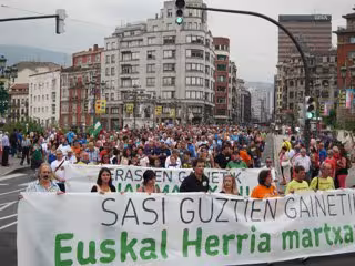 La manifestación ha partido a las 12.10 horas de la Plaza Moyúa de Bilbao con la participación del presidente de Sortu, Asier Harraiz, la portavoz de EH Bildu en el Parlamento vasco, Laura Mintegi, u otros miembros de la izquierda abertzale como Joseba Permach, Niko Moreno o Tasio Erkizia, a la cabeza. También han asistido el líder de Alternatiba, Oskar Matute, y el representante de EA Unai Ziarreta.