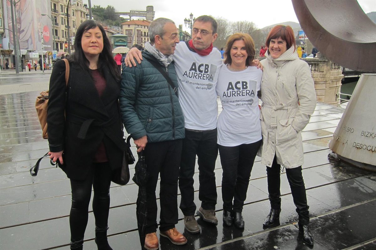 Monedero se ha trasladado este domingo a Bilbao para mostrar su apoyo a la candidatura de 'Kaliangora' a la Secretaría General de Podemos Euskadi, y a los trabajadores de la ACB de Sestao que se han concentrado en las inmediaciones del Ayuntamiento de la capital vizcaína.