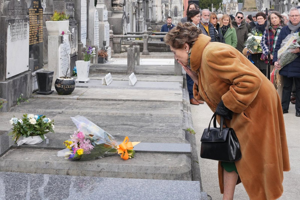 La viuda de Fernando Múgica Mapi Heras pone un ramo de flores en la tumba de Fernando Múgica cuando se cumple el 27 aniversario de su asesinato a manos de ETA, en el cementerio de Polloe de San Sebastián, a 4 de febrero de 2023, en San Sebastián - Unanue - Europa Press