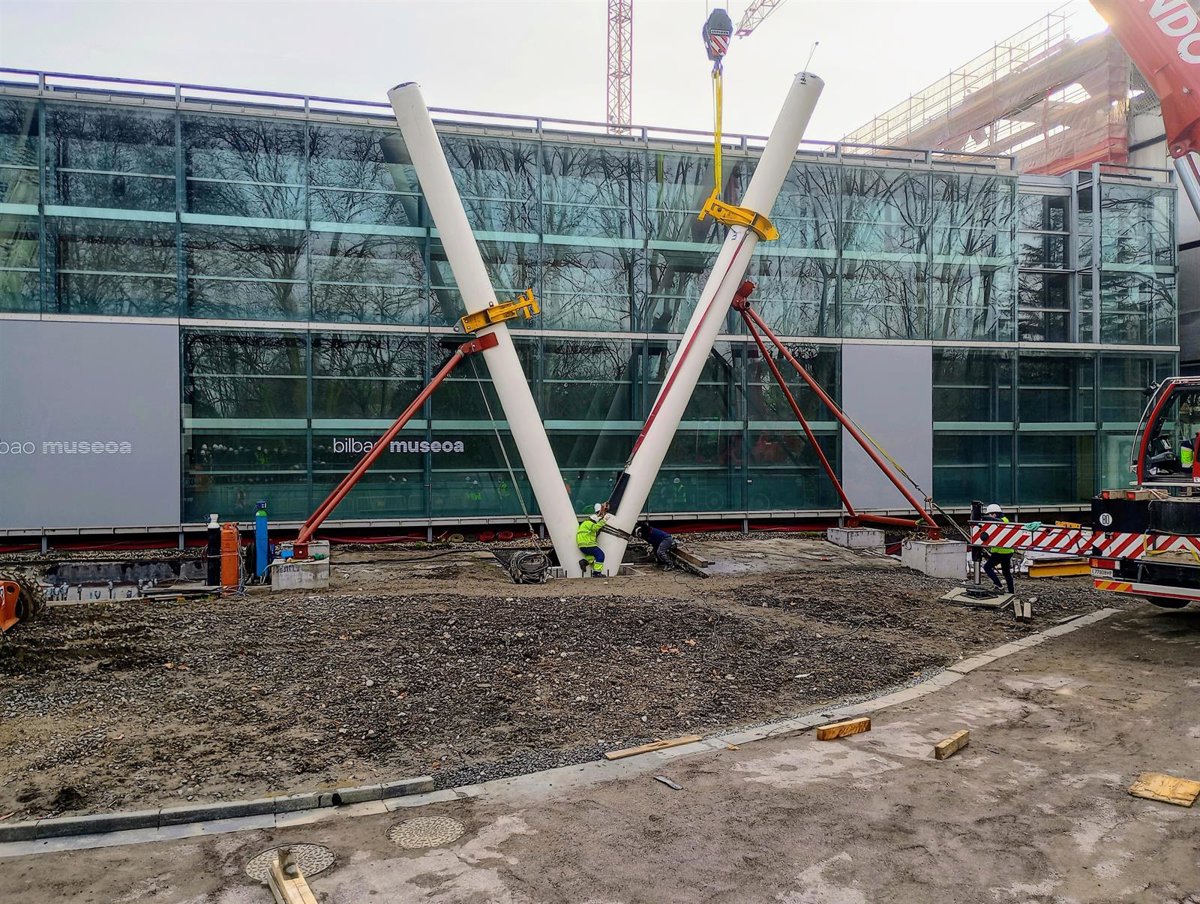 Archivo - Trabajos de colocación del primer pilar en V del proyecto de ampliación del museo Bellas Artes Bilbao - EUROPA PRESS EUSKADI - Archivo
