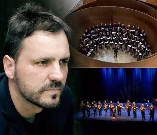 La voz de Kirmen Uribe resonará en el Atrio del Museo acompañada de las voces de los 70 coralistas de la Sociedad Coral de Bilbao y los diez integrantes de la orquesta de metales Euskadi Brass.