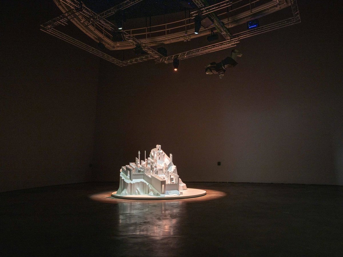 La obra muestra, en un espacio geométricamente complejo pero aplanado, una localidad medieval fortificada que se erige en una colina. Según Leckey, "la ciudad trasciende las leyes de la física; es una ciudad del pasado y del futuro". Su interpretación parte de la imagen bidimensional para llegar a la forma escultórica, habitando el umbral entre la realidad material y el ámbito de lo inmaterial, lo real y lo imaginario, ha explicado el museo.