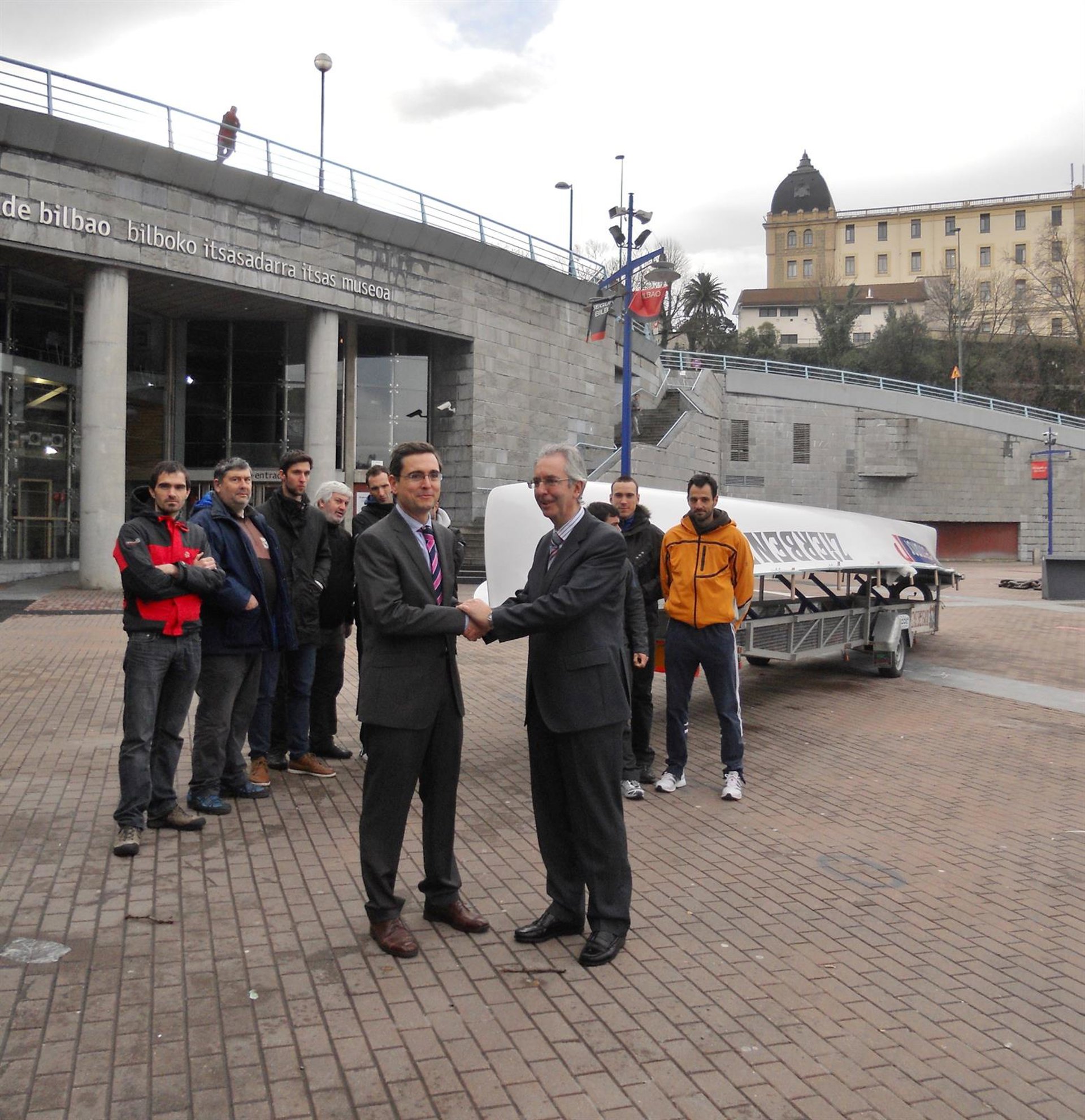 El acto protocolario de donación de la trainera ha tenido lugar este martes, con la presencia del director del Museo Marítimo Ría de Bilbao, Jon Ruigomez, el director general de Petronor, Víctor Pérez de Guezuraga, y del director de Comunicación de Petronor, José Ignacio Zudaire.