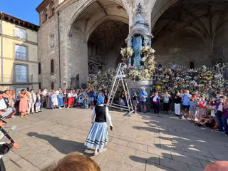 Las neskas y blusas veteranos son los indudables protagonistas de este 8 de agosto en las fiestas de La Blanca de Vitoria-Gasteiz y han iniciado el día con la tradicional ofrenda floral ante la hornacina de la balconada de San Miguel para rendir tributo a la Virgen Blanca en el día dedicado a los más mayores de la capital alavesa.