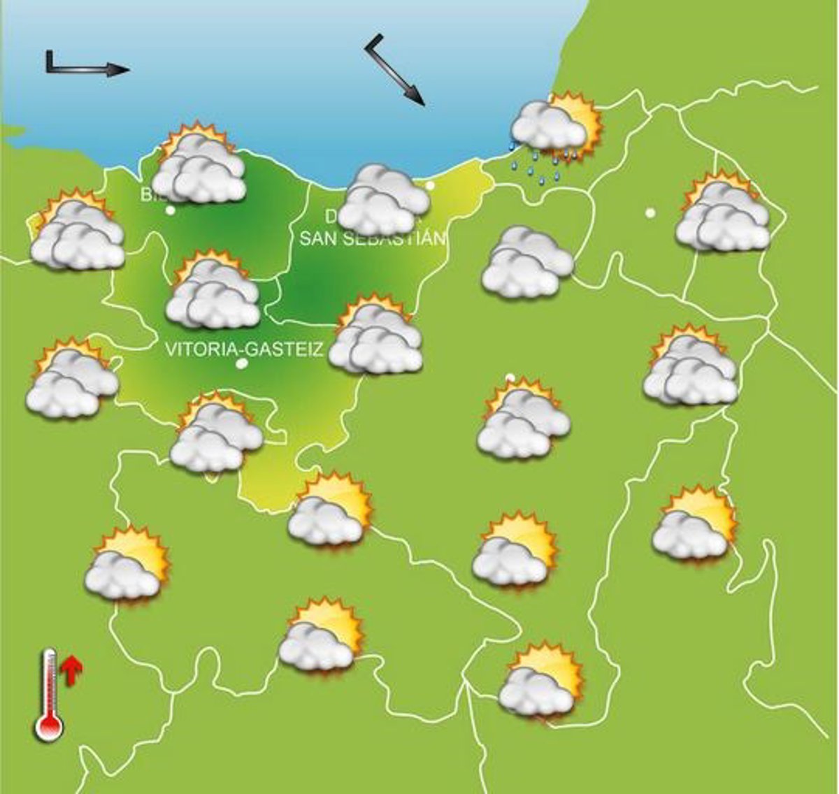La Agencia Vasca de Meteorología, Euskalmet, prevé para este jueves nubes abundantes que dejarán algunas precipitaciones débiles en la vertiente cantábrica durante las primeras horas del día.