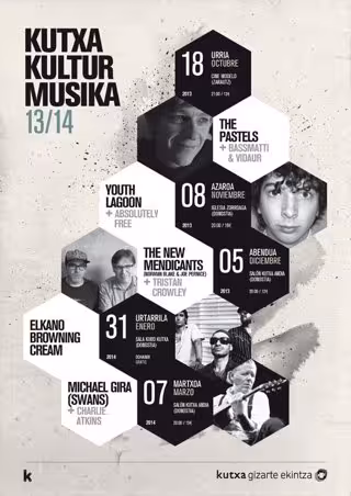 El primer concierto del ciclo será el de la banda escocesa The Pastels, que actuarán el viernes 18 de octubre a las 21.00 horas en el Cine Modelo de Zarautz, y tendrán como teloneros al grupo donostiarra Basmatti & Vidaur.
