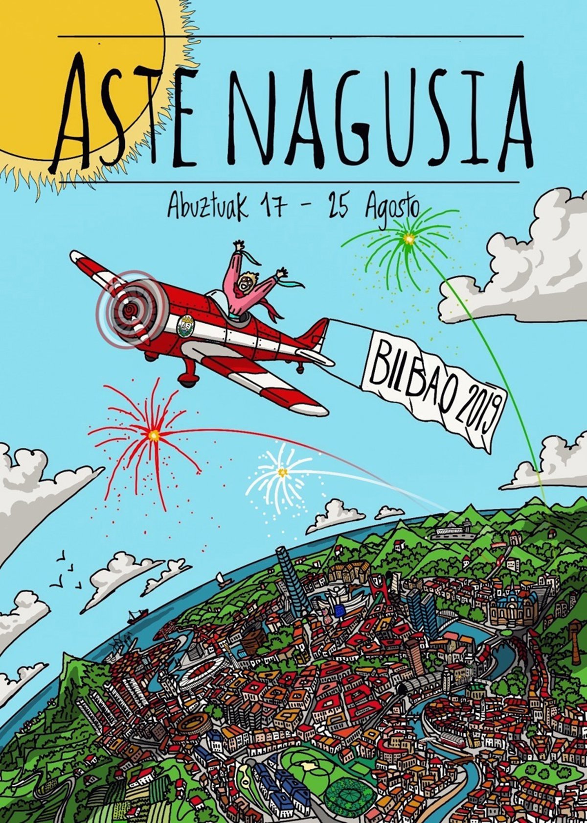 La concejala de Fiestas del Ayuntamiento de Bilbao, Itziar Urtasun, acompañada del Jurado especializado del tradicional Concurso de Carteles del Ayuntamiento de Bilbao que, año tras año, "busca sorprender con una imagen que invite a disfrutar y participar" de la Semana Grande bilbaína, ha anunciado el cartel oficial de las fiestas, que tendrá el nombre 'Gure mundua'.