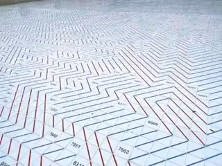 Se trata de una pieza instalada sobre el suelo, de forma cuadrada con 14 metros de lado e integrada por 10.000 piezas de cerámica, en la que Ferrer trabaja con la seriación de números primos, un tema recurrente en su producción.