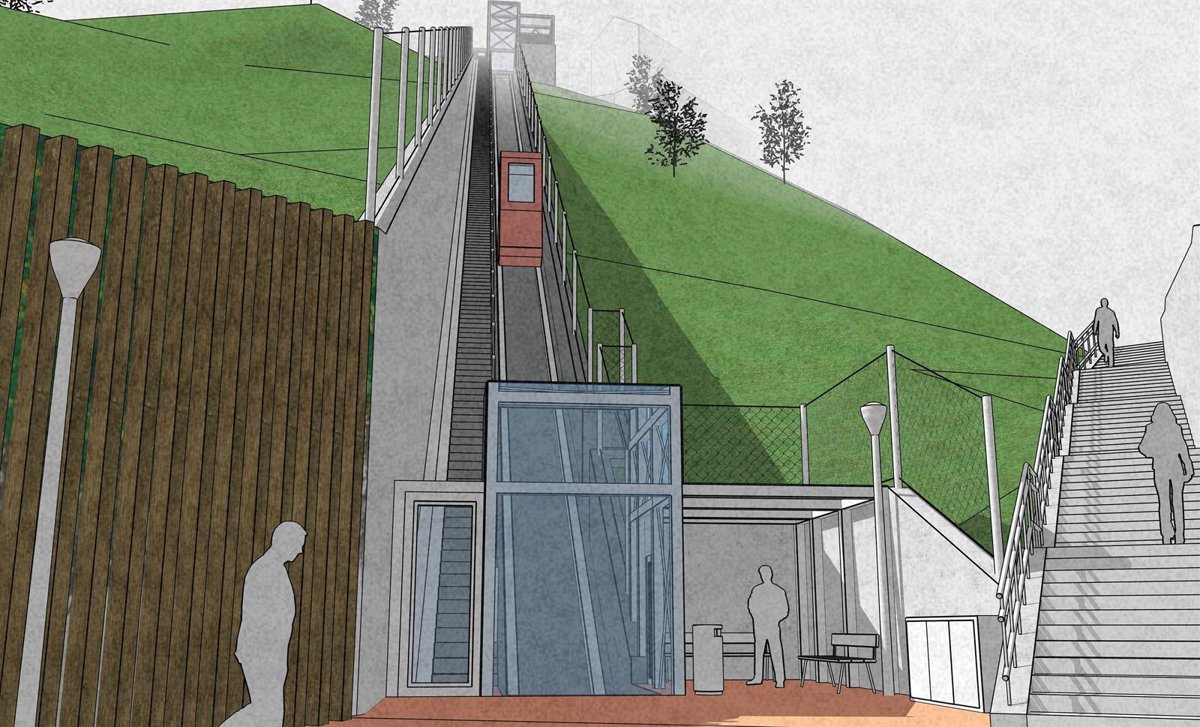 Estos trabajos, dada la orografía de la zona, requieren de excavación de las tierras existentes y ejecución de muros para la construcción del foso inclinado del elevador. Además, se completarán con la reurbanización de la zona del embarque inferior, donde actualmente se encuentra un aparcamiento con gran pendiente, que será reducida a un 6%.