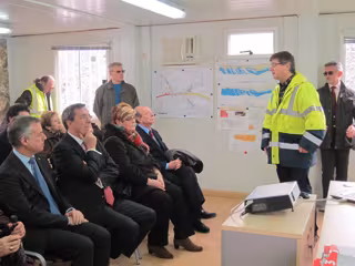 Tras una breve charla explicativa de las características técnicas de la nueva línea que dará servicio a los barrios del norte de Bilbao, el grupo ha desarrollado una visita que ha consistido en un recorrido en vehículos todo terrenos entre la rampa de ataque de Txurdinaga (futura galería de ventilación y emergencia) y la caverna que albergará la estación de Zurbaranbarri.