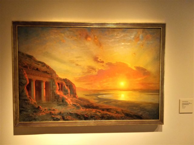 Óleo sobre lienzo de Ernst Karl Eugen Korner 'Las tumbas de Beni Hassan a orillas del Nilo' Siglo XIX