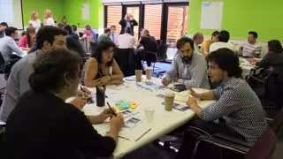 Los participantes, divididos en grupos multidisciplinares, han trabajado durante cinco horas en los proyectos presentados, mediante el uso de una metodología propia que incluye el conocimiento de proyectos, la definición del reto y la generación de ideas para después compartirlas.