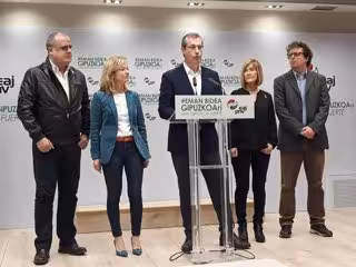 Olano ha comparecido en San Sebastián junto al presidente del GBB, Joseba Egibar, acompañado también por la presidenta de las Juntas Generales de Gipuzkoa, Eider Mendoza, y de los junteros jeltzales María Eugenia Arrizabalaga y Xabier Ezeizabarrena, para presentar la dinámica de trabajo para la precampaña electoral en Gipuzkoa.