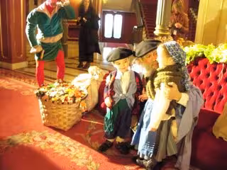 El carbonero ha llegado al teatro, acompañado por su novia Mari Domingi y los 'galtzagorris' a las once de la mañana, y se ha dirigido desde el balcón a los niños congregados en la Plaza del Arriga, para preguntarles si se han portado bien y decirles que les esperaba arriba. Posteriormente ha ido recibiendo a los pequeños según iban llegando.