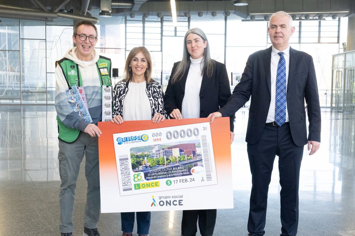 La ONCE ha presentado este martes la lámina del cupón dedicado al 25 aniversario del Palacio de Congresos y de la Música de Bilbao, que se sorteará este sábado, 17 de febrero.