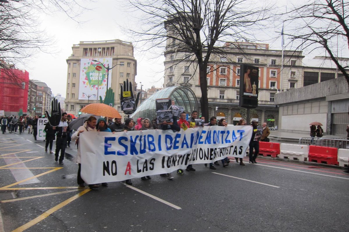 Los participantes han arrancado pasadas las 12.00 horas desde la Plaza del Teatro Arriaga y ha recorrido la Gran Vía bajo el lema 'No a las identificaciones racistas'. En la misma se han proferido gritos como "la ley de Extranjería es una porquería".