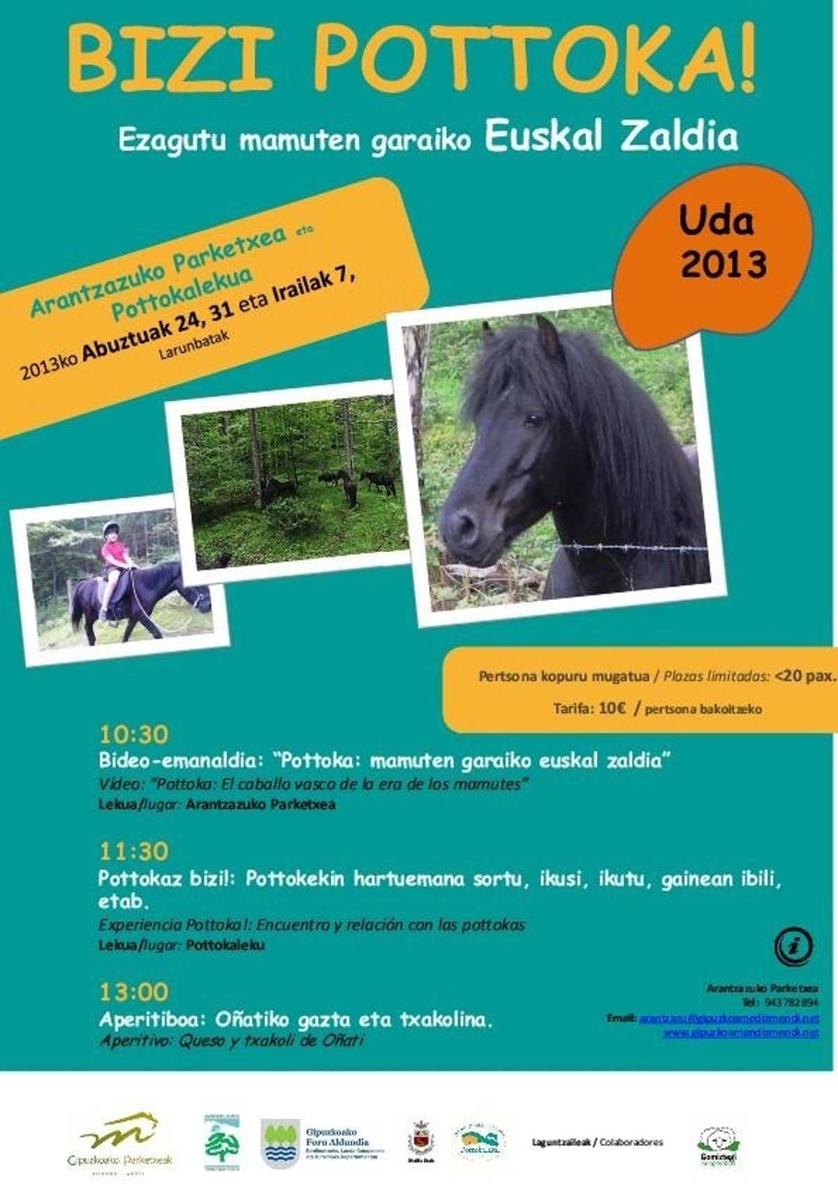 El Parketxe de Arantzazu ha organizado, dentro de la campaña de verano y siguiendo la línea de actividades dirigida al conocimiento del Parque Natural Aizkorri-Aratz, un nuevo evento que tendrá como eje de referencia a la 'Pottoka', el pony vasco de origen prehistórico.
