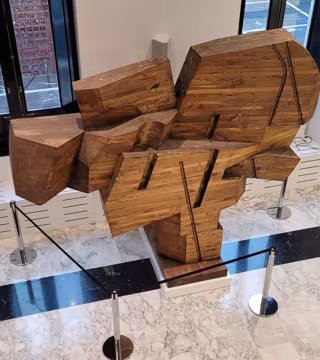 La escultura con forma arbórea, realizada en 1979, está compuesta por varios bloques de madera. La Cámara ha destacado sus dimensiones, con casi tres metros de altura y 600 kilos de peso, lo que ha obligado a realizar todos los trabajos de transporte y montaje "de manera minuciosa y cuidando el hasta último detalle".