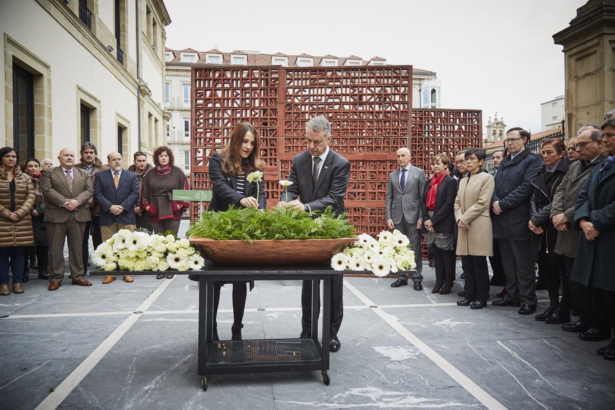 Tras la lectura, ha tenido lugar una ofrenda floral y dos minutos de silencio en recuerdo de todas las víctimas. El acto ha finalizado con la interpretación del "Agur Jaunak" y, durante toda la jornada, las puertas exteriores del Parlamento Vasco permanecerán abiertas.
