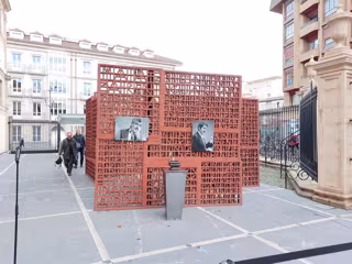 El Legislativo vasco ha encendido un pebetero junto a la escultura 'Brújula de Medianoche', ubicada frente a la entrada de la sede del Parlamento en memoria de las víctimas del terrorismo, y junto a él se han colocado las fotos de los dos parlamentarios.