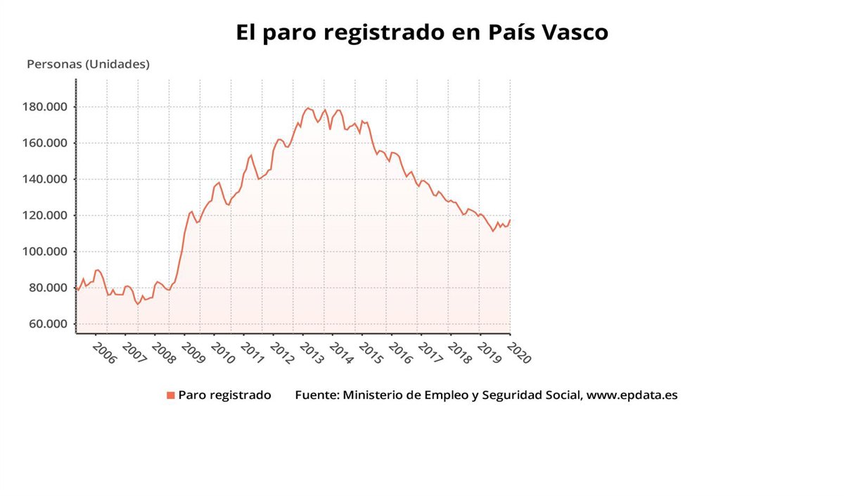 Gráfico del paro registrado en febrero de 2020 en Euskadi - EUROPA PRESS