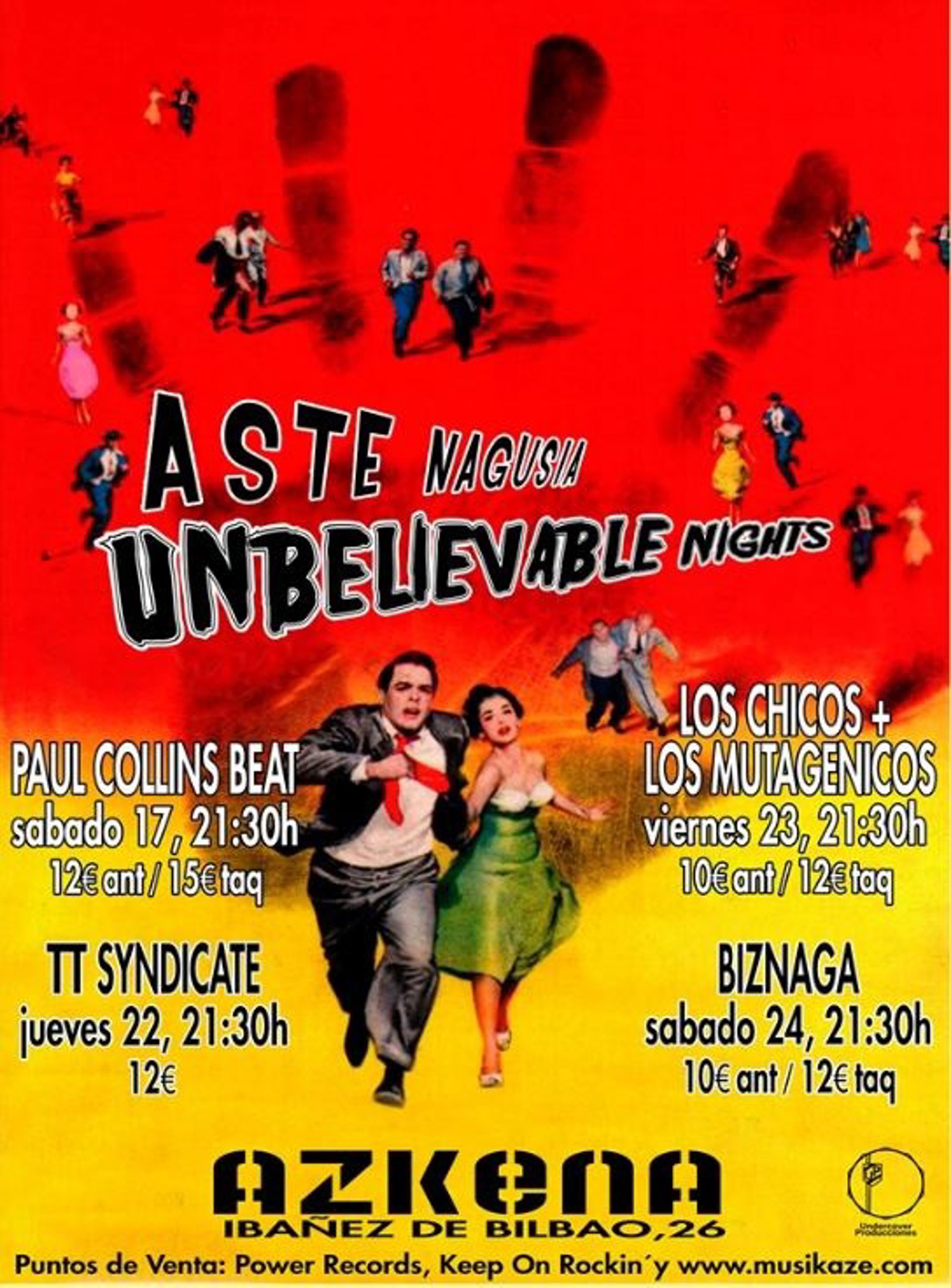 La sala Azkena de Bilbao ha organizado un programa de conciertos con motivo de la Aste Nagusia en los que actuarán el norteamericano Paul Collins, referente del power pop, el grupo portugués TT Syndicate y las bandas españolas Los Chicos, Mutagénicos y Biznaga.