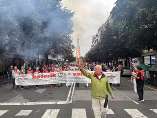 Durante la manifestación, los pensionistas han portado una pancarta en la que podía leerse "vetos no", "HEL aurrera" (adelante ILP) y "pensión mínima = salario mínimo". Algunas de las personas congregadas han portado banderas palestinas, y la propia manifestación estaba encabezada por dos mujeres que han sostenido una a lo largo de la marcha.