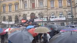 Durante la movilización, una de las portavoces, Andrea Uña, ha mostrado su solidaridad con las familias de los dos operarios que siguen sepultados en el derrumbe del vertedero de Zaldibar y ha criticado que "sigan sin ser rescatados".