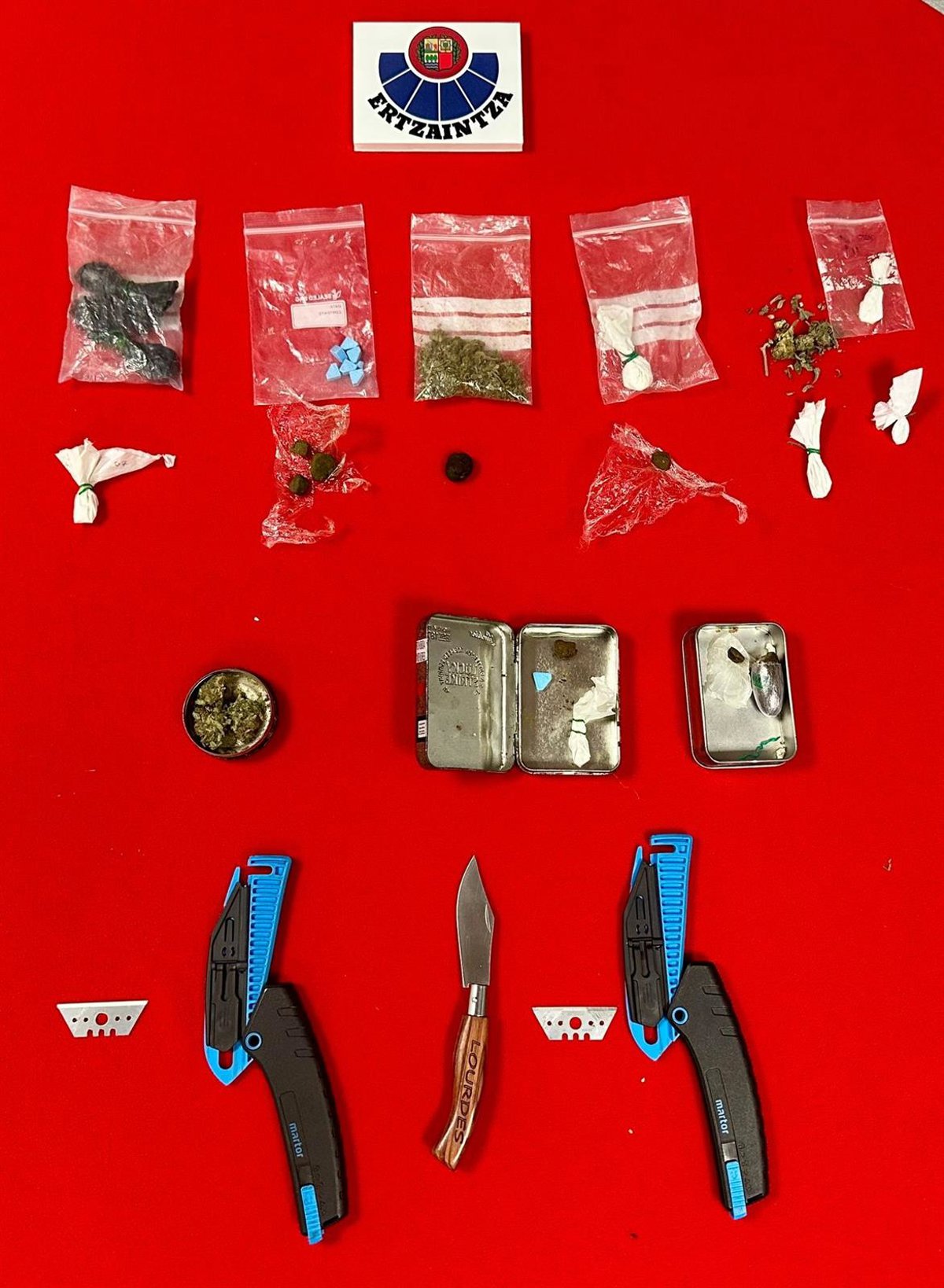 Según ha explicado Seguridad, estas intervenciones son fruto de las tareas preventivas que realiza la Ertzaintza en el marco del Plan de Acción para el Control de Armas Blancas y Trafico de Drogas en los entornos del ocio nocturno.