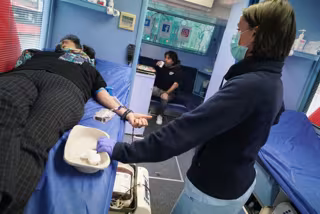 Imagen de un donante de sangre en el punto de Abando, en Bilbao, en los que se sigue recogiendo sangre - H.BILBAO