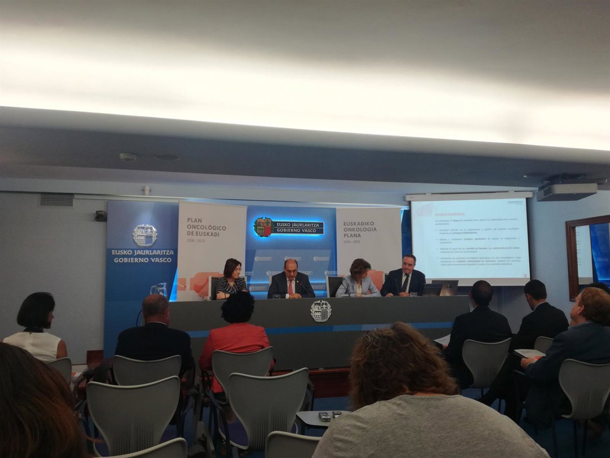 En rueda de prensa en San Sebastián, Darpón, acompañado de miembros de su departamento y de las personas que han trabajado en la elaboración de este Plan, ha dado cuenta de este documento, que ha contado "con el asesoramiento de grupos de expertos y profesionales sanitarios implicados en la atención de pacientes oncológicos y sus familiares".